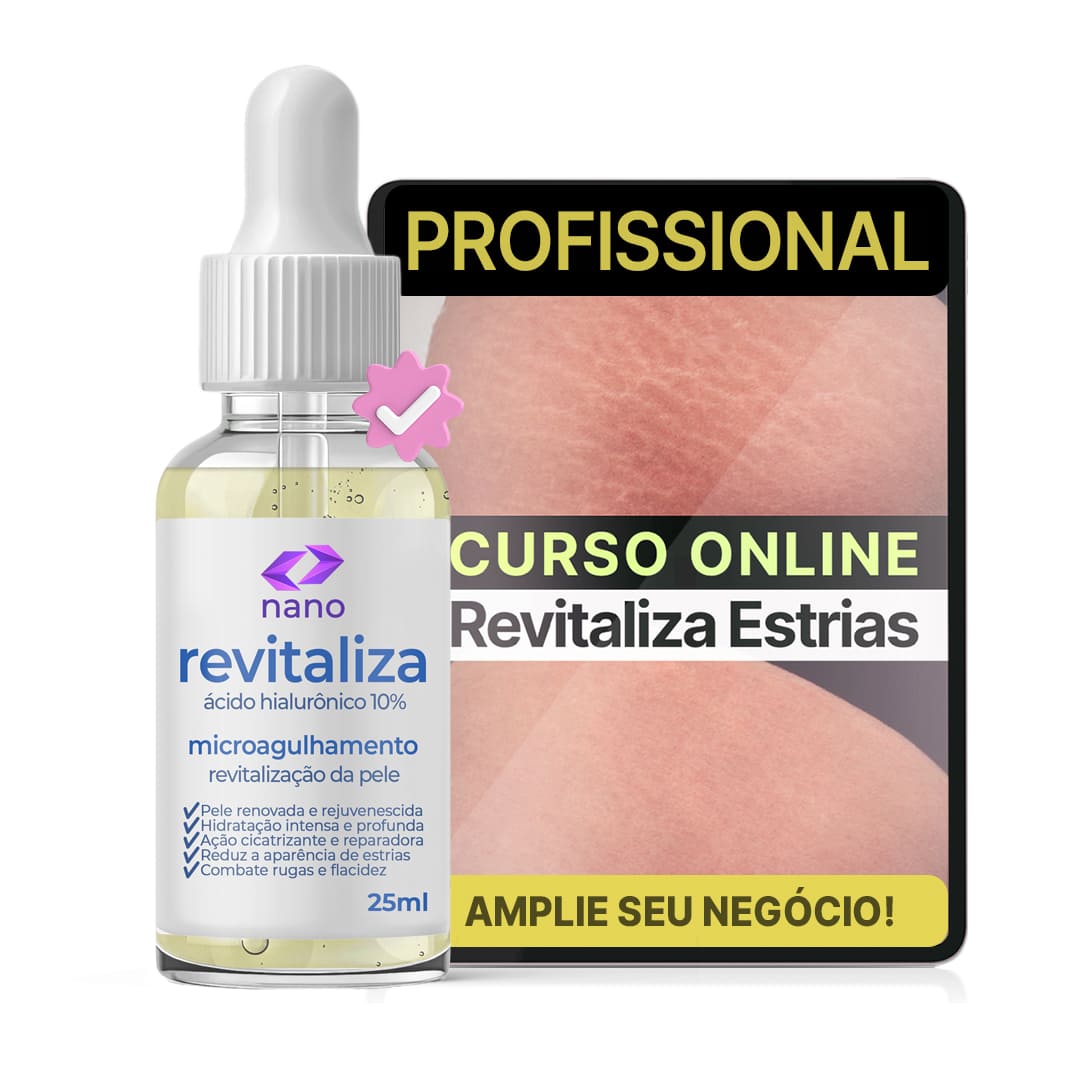 O Sérum Revitaliza™ é o protagonista do protocolo. Para profissionais que desejam entregar performance máxima, recomendamos o uso dos produtos complementares da mesma linha — todos com nanotecnologia para otimizar cada etapa: